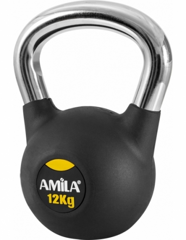 Η σειρά AMILA Rubber Cover Cr Handle είναι φτιαγμένη από μαντέμι, με επένδυση λάστιχου για την προστασία του πατώματος σας. Με αρκετά μεγάλες λαβές για άνετο πιάσιμο, ενώ στην κορυφή της λαβής θα δούμε αντιολισθητική επιφάνεια για να μην σας γλιστράει το Kettlebell καθ’ όλη την διάρκεια της άσκησης. Τέλος οι λαβές είναι χρωμίου για να έχουν μια ανοχή στην σκουριά. Φυσικά χρειάζεται να σκουπίζετε την λαβή με ένα πανάκι μετά από την προπόνηση σας.